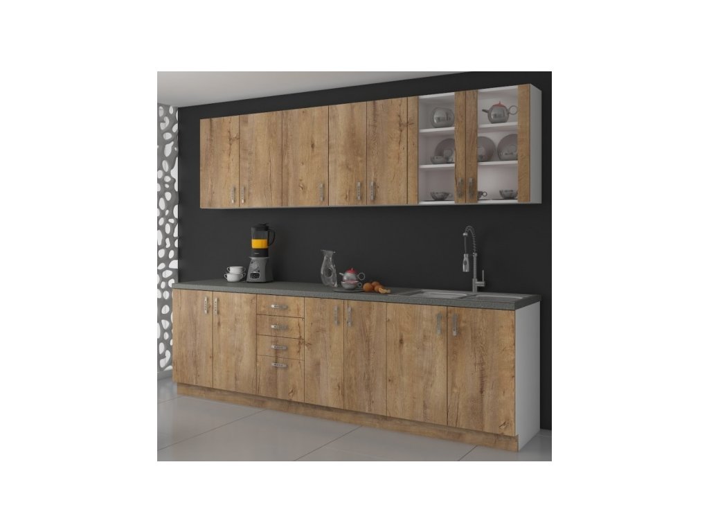 Jednotlivé skříňky dodáváme v demontu, bez spotřebiče a vyobrazených doplňků (nejsou v ceně).