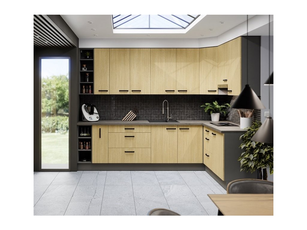 Moderní kuchyňská linka v barevném provedení Antracit (korpus) a Jodelka Scandi (dvířka). Tato linka má atraktivní design díky moderním výškově nastavitelným nožkám a je tak ideální volbou při výběru Vaší kuchyně. U skříněk s výklopem se dvířka zvedají pomocí plynových pístů, Cargo skříňky jsou výsuvné, všechny ostatní skříňky (mimo rohových) a zásuvky jsou opatřeny SYSTÉMEM TICHÉHO DOVÍRÁNÍ.