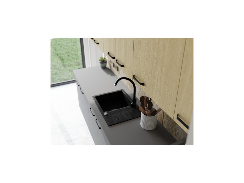 Moderní kuchyňská linka v barevném provedení Antracit (korpus/dvířka spodních skříněk) a Jodelka Scandi (dvířka horních skříněk). Tato linka má atraktivní design díky moderním výškově nastavitelným nožkám a je tak ideální volbou při výběru Vaší kuchyně. U skříněk s výklopem se dvířka zvedají pomocí plynových pístů, Cargo skříňky jsou výsuvné, všechny ostatní skříňky (mimo rohových) a zásuvky jsou opatřeny SYSTÉMEM TICHÉHO DOVÍRÁNÍ.