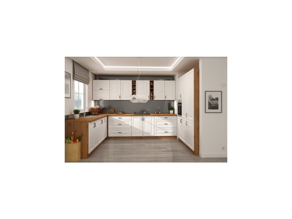 Moderní kuchyňská linka v barevném provedení dub Artisan (korpus) a MDF bílý mat (dvířka s prolisy). Tato linka má atraktivní design a je tak ideální volbou při výběru Vaší kuchyně. U skříněk s výklopem se dvířka zvedají pomocí plynových pístů, Cargo skříňky jsou výsuvné, všechny ostatní skříňky (mimo rohových) a zásuvky jsou opatřeny SYSTÉMEM TICHÉHO DOVÍRÁNÍ. Úchytky jsou kovové.