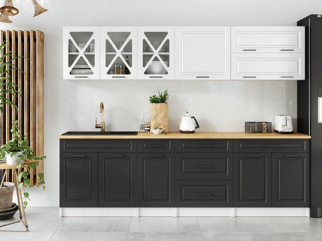 Kuchyňská linka Tyra je vyrobená ve velmi oblíbeném skandinávském stylu, který se hodí do kuchyně v paneláku i v rodinném domě. Tento styl má jedinečnou schopnost proměnit Vaši kuchyň v útulnou a zároveň funkční místnost, kde bude radost vařit i péct. Kuchyňská linka Tyra nabízí dostatek úložného i pracovního prostoru. Všechny skříňky jsou samostatné, takže si je můžete sestavit tak, jak Vám to vyhovuje. Korpusy skříněk jsou vyrobené z lamina 18 mm s hranami ABS a dvířka jsou MDF 16mm. Všechny skříňky jsou dodávány v demontu. Součástí balení je montážní plánek včetně všech potřebných spojovacích materiálů. Cena je uvedena za sestavu vyobrazenou na úvodní fotografii BEZ PRACOVNÍ DESKY, s úchytkami, které jsou vyobrazeny v doplňkových fotografiích. Pracovní desku lze dokoupit nad každou skříňku zvlášť podle její šíře. Vyobrazené spotřebiče, dřez, baterie, doplňky a dekorace nejsou v ceně.