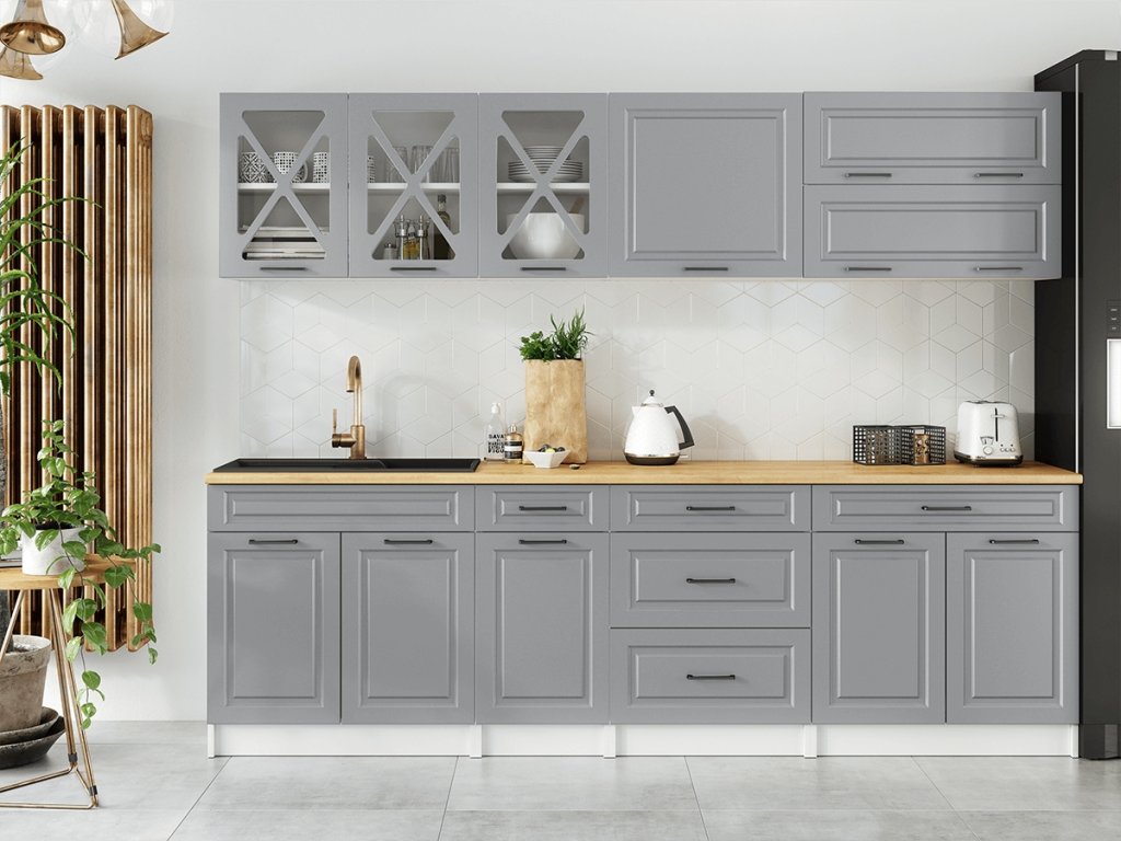 Kuchyňská linka Tyra je vyrobená ve velmi oblíbeném skandinávském stylu, který se hodí do kuchyně v paneláku i v rodinném domě. Tento styl má jedinečnou schopnost proměnit Vaši kuchyň v útulnou a zároveň funkční místnost, kde bude radost vařit i péct. Kuchyňská linka Tyra nabízí dostatek úložného i pracovního prostoru. Všechny skříňky jsou samostatné, takže si je můžete sestavit tak, jak Vám to vyhovuje. Korpusy skříněk jsou vyrobené z lamina 18 mm s hranami ABS a dvířka jsou MDF 16mm. Všechny skříňky jsou dodávány v demontu. Součástí balení je montážní plánek včetně všech potřebných spojovacích materiálů. Cena je uvedena za sestavu vyobrazenou na úvodní fotografii BEZ PRACOVNÍ DESKY, s úchytkami, které jsou vyobrazeny v doplňkových fotografiích. Pracovní desku lze dokoupit nad každou skříňku zvlášť podle její šíře. Vyobrazené spotřebiče, dřez, baterie, doplňky a dekorace nejsou v ceně.