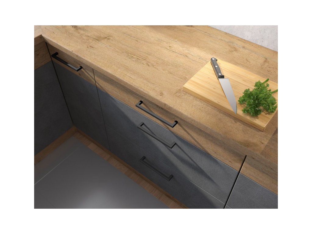 Moderní kuchyňská linka v barevném provedení dub Lancelot (korpus) a Matera mat (dvířka). Tato linka má atraktivní design a je tak ideální volbou při výběru Vaší kuchyně. U skříněk s výklopem se dvířka zvedají pomocí plynových pístů, Cargo skříňky jsou výsuvné a všechny ostatní skříňky (mimo rohových) a zásuvky jsou opatřeny SYSTÉMEM TICHÉHO DOVÍRÁNÍ. Úchytky jsou kovové.