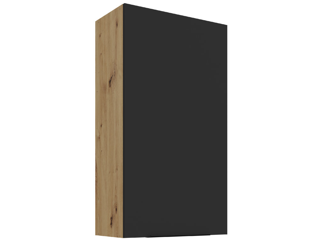 je součástí moderní sektorové kuchyňské linky Aria BL-AR, která je v barevném provedení dub Artisan (korpus) a černý mat (dvířka). U skříněk s výklopem se dvířka zvedají pomocí plynových pístů, Cargo skříňky jsou výsuvné, všechny ostatní skříňky (mimo rohových) a zásuvky jsou opatřeny SYSTÉMEM TICHÉHO DOVÍRÁNÍ. Úchytky jsou hliníkové černé. Na předních stranách tohoto nábytku (dvířka/zásuvky) má linka speciální povrchovou úpravu Anti Finger Print, nezanechávající otisky prstů.