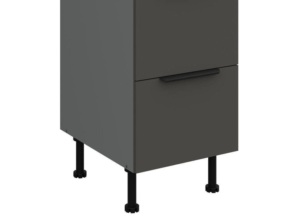 je součástí moderní sektorové kuchyňské linky Aria GR/ANT, která je v barevném provedení Antracit (korpus) a Graphite (dvířka). Tato linka má atraktivní design díky moderním výškově nastavitelným nožkám a je tak ideální volbou při výběru Vaší kuchyně. U skříněk s výklopem se dvířka zvedají pomocí plynových pístů, Cargo skříňky jsou výsuvné, všechny ostatní skříňky (mimo rohových) a zásuvky jsou opatřeny SYSTÉMEM TICHÉHO DOVÍRÁNÍ. Úchytky jsou hliníkové černé. Na předních stranách tohoto nábytku (dvířka/zásuvky) má linka speciální povrchovou úpravu Anti Finger Print, nezanechávající otisky prstů.