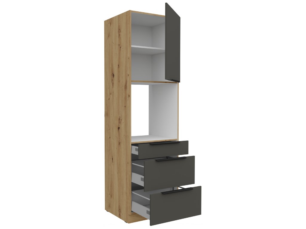 Kuchyňská skříňka Aria GR-AR - 60 DPS-210 3S 1F sloupek se zabudovanou troubou, šuplíkový PREMIUM BOX