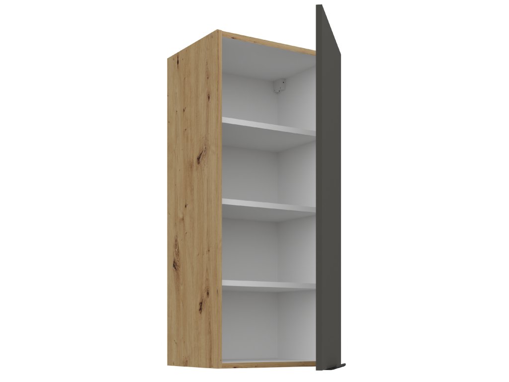 je součástí moderní sektorové kuchyňské linky Aria GR-AR, která je v barevném provedení dub Artisan (korpus) a Graphite (dvířka). U skříněk s výklopem se dvířka zvedají pomocí plynových pístů, Cargo skříňky jsou výsuvné, všechny ostatní skříňky (mimo rohových) a zásuvky jsou opatřeny SYSTÉMEM TICHÉHO DOVÍRÁNÍ. Úchytky jsou hliníkové černé. Na předních stranách tohoto nábytku (dvířka/zásuvky) má linka speciální povrchovou úpravu Anti Finger Print, nezanechávající otisky prstů.