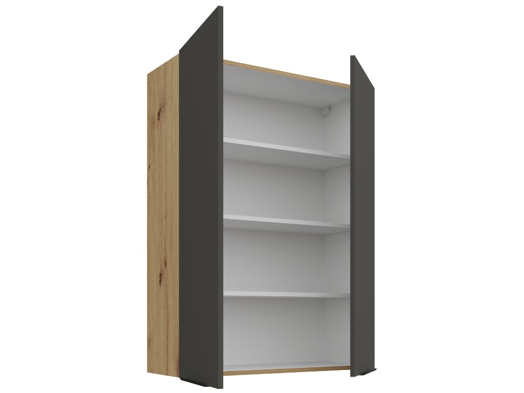je součástí moderní sektorové kuchyňské linky Aria GR-AR, která je v barevném provedení dub Artisan (korpus) a Graphite (dvířka). U skříněk s výklopem se dvířka zvedají pomocí plynových pístů, Cargo skříňky jsou výsuvné, všechny ostatní skříňky (mimo rohových) a zásuvky jsou opatřeny SYSTÉMEM TICHÉHO DOVÍRÁNÍ. Úchytky jsou hliníkové černé. Na předních stranách tohoto nábytku (dvířka/zásuvky) má linka speciální povrchovou úpravu Anti Finger Print, nezanechávající otisky prstů.