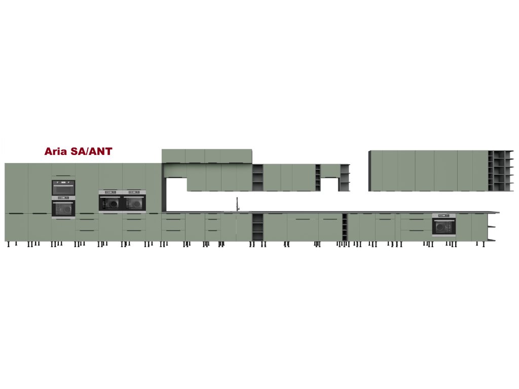 je součástí moderní sektorové kuchyňské linky Aria SA/ANT, která je v barevném provedení Antracit (korpus) a Aquamarine (dvířka). Tato linka má atraktivní design díky moderním výškově nastavitelným nožkám a je tak ideální volbou při výběru Vaší kuchyně. U skříněk s výklopem se dvířka zvedají pomocí plynových pístů, Cargo skříňky jsou výsuvné, všechny ostatní skříňky (mimo rohových) a zásuvky jsou opatřeny SYSTÉMEM TICHÉHO DOVÍRÁNÍ. Úchytky jsou hliníkové černé. Na předních stranách tohoto nábytku (dvířka/zásuvky) má linka speciální povrchovou úpravu Anti Finger Print, nezanechávající otisky prstů.