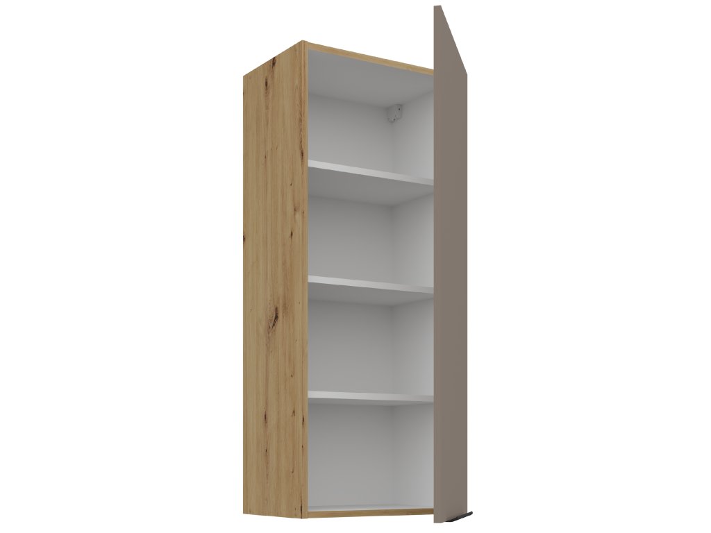 je součástí moderní sektorové kuchyňské linky Aria TA-AR, která je v barevném provedení dub Artisan (korpus) a Sandgrau (dvířka). U skříněk s výklopem se dvířka zvedají pomocí plynových pístů, Cargo skříňky jsou výsuvné, všechny ostatní skříňky (mimo rohových) a zásuvky jsou opatřeny SYSTÉMEM TICHÉHO DOVÍRÁNÍ. Úchytky jsou hliníkové černé. Na předních stranách tohoto nábytku (dvířka/zásuvky) má linka speciální povrchovou úpravu Anti Finger Print, nezanechávající otisky prstů.