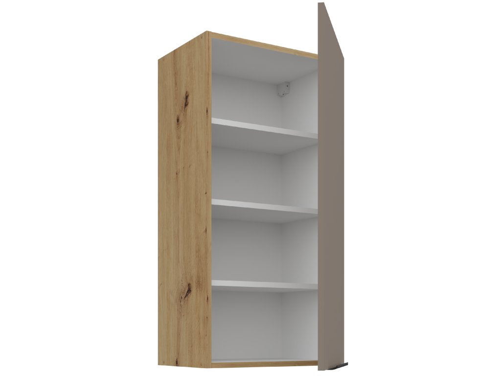 je součástí moderní sektorové kuchyňské linky Aria TA-AR, která je v barevném provedení dub Artisan (korpus) a Sandgrau (dvířka). U skříněk s výklopem se dvířka zvedají pomocí plynových pístů, Cargo skříňky jsou výsuvné, všechny ostatní skříňky (mimo rohových) a zásuvky jsou opatřeny SYSTÉMEM TICHÉHO DOVÍRÁNÍ. Úchytky jsou hliníkové černé. Na předních stranách tohoto nábytku (dvířka/zásuvky) má linka speciální povrchovou úpravu Anti Finger Print, nezanechávající otisky prstů.