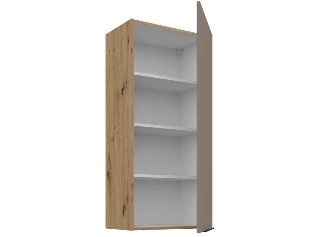 je součástí moderní sektorové kuchyňské linky Aria TA-AR, která je v barevném provedení dub Artisan (korpus) a Sandgrau (dvířka). U skříněk s výklopem se dvířka zvedají pomocí plynových pístů, Cargo skříňky jsou výsuvné, všechny ostatní skříňky (mimo rohových) a zásuvky jsou opatřeny SYSTÉMEM TICHÉHO DOVÍRÁNÍ. Úchytky jsou hliníkové černé. Na předních stranách tohoto nábytku (dvířka/zásuvky) má linka speciální povrchovou úpravu Anti Finger Print, nezanechávající otisky prstů.