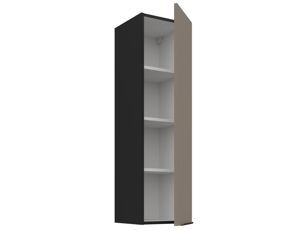 je součástí moderní sektorové kuchyňské linky Aria TA-BL, která je v barevném provedení černý mat (korpus) a Sandgrau (dvířka). U skříněk s výklopem se dvířka zvedají pomocí plynových pístů, Cargo skříňky jsou výsuvné, všechny ostatní skříňky (mimo rohových) a zásuvky jsou opatřeny SYSTÉMEM TICHÉHO DOVÍRÁNÍ. Úchytky jsou hliníkové černé. Na předních stranách tohoto nábytku (dvířka/zásuvky) má linka speciální povrchovou úpravu Anti Finger Print, nezanechávající otisky prstů.