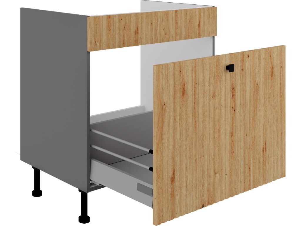 je součástí moderní sektorové kuchyňské linky Ava AR/ANT, která je v barevném provedení Antracit (korpus) a dub Artisan (dvířka). Tato linka má atraktivní design díky moderním výškově nastavitelným nožkám a je tak ideální volbou při výběru Vaší kuchyně. U skříněk s výklopem se dvířka zvedají pomocí plynových pístů, Cargo skříňky jsou výsuvné, všechny ostatní skříňky (mimo rohových) a zásuvky jsou opatřeny SYSTÉMEM TICHÉHO DOVÍRÁNÍ.