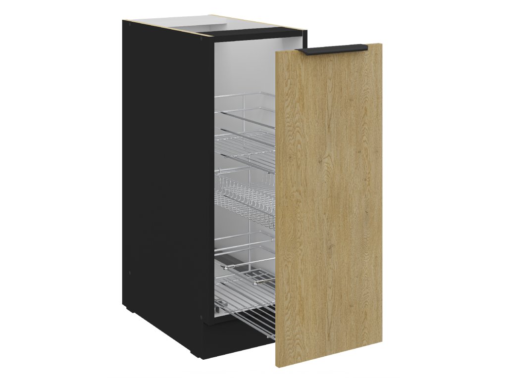 je součástí moderní sektorové kuchyňské linky Cremona BL, která je v barevném provedení černý mat (korpus) a dub Cremona (dvířka). U skříněk s výklopem se dvířka zvedají pomocí plynových pístů, Cargo skříňky jsou výsuvné, všechny ostatní skříňky (mimo rohových) a zásuvky jsou opatřeny SYSTÉMEM TICHÉHO DOVÍRÁNÍ.
