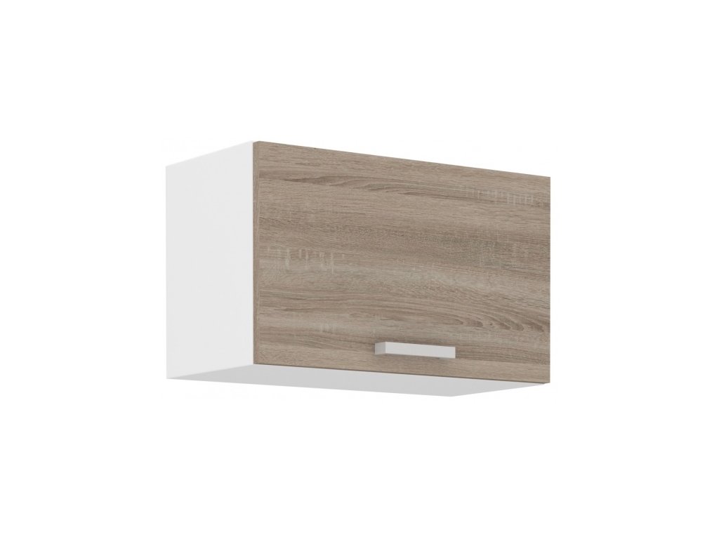 je součástí moderní sektorové kuchyňské linky Dave, která je v atraktivním designu a je tak ideální volbou při výběru Vaší kuchyně. Linka má korpus v bílém matu a dvířka skříněk jsou v odstínu dub sonoma trufla. U skříněk s výklopem se dvířka zvedají pomocí plynových pístů, úchytky jsou plastové.
