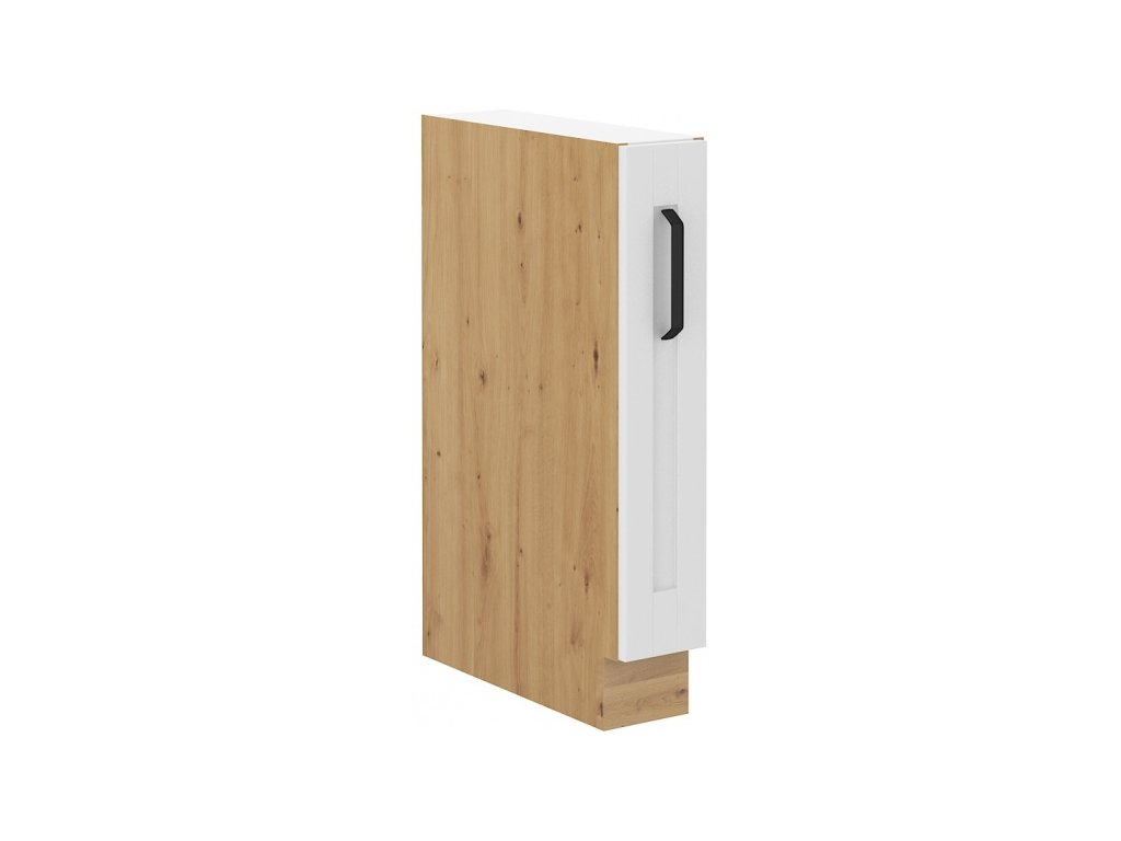 je součástí moderní sektorové kuchyňské linky Luna WHAR, která je v barevném provedení dub Artisan (korpus) a MDF bílá (dvířka s prolisy). Tato linka má atraktivní design a je tak ideální volbou při výběru Vaší kuchyně. U skříněk s výklopem se dvířka zvedají pomocí plynových pístů, Cargo skříňky jsou výsuvné, všechny ostatní skříňky (mimo rohových) a zásuvky jsou opatřeny SYSTÉMEM TICHÉHO DOVÍRÁNÍ. Úchytky jsou kovové.