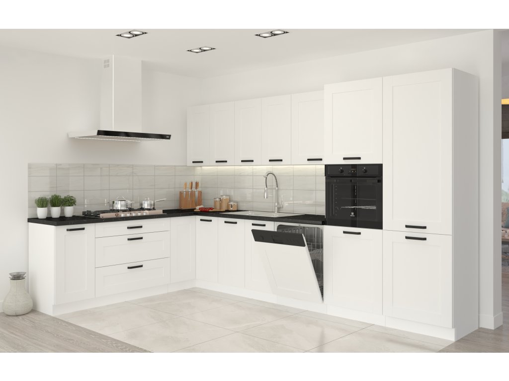 je součástí moderní sektorové kuchyňské linky Luna WHWH, která je v barevném provedení bílý mat (korpus) a MDF bílá (dvířka s prolisy). Tato linka má atraktivní design a je tak ideální volbou při výběru Vaší kuchyně. U skříněk s výklopem se dvířka zvedají pomocí plynových pístů, Cargo skříňky jsou výsuvné, všechny ostatní skříňky (mimo rohových) a zásuvky jsou opatřeny SYSTÉMEM TICHÉHO DOVÍRÁNÍ. Úchytky jsou kovové.