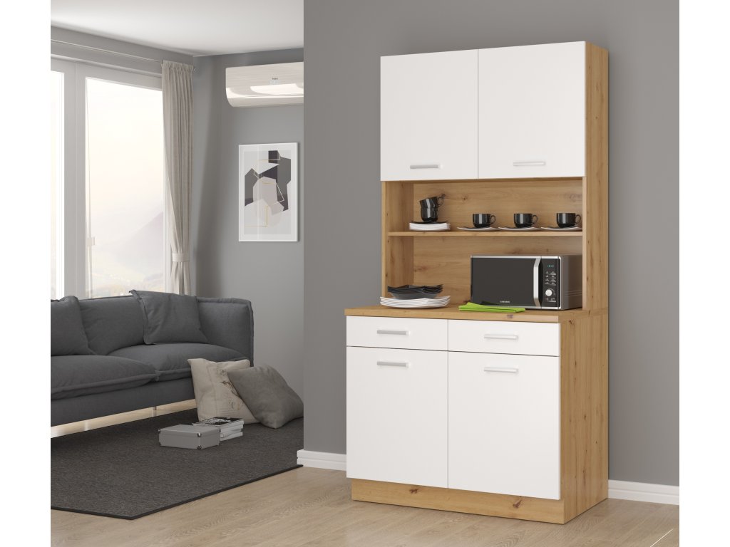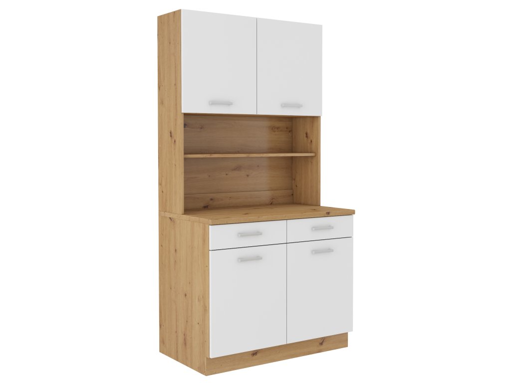 je součástí moderní sektorové kuchyňské linky Maria New Artisan, která je v atraktivním designu a je tak ideální volbou při výběru Vaší kuchyně. Linka má korpus v odstínu dub Artisan a dvířka skříněk jsou v bílém matu. Pracovní deska je v odstínu dub Artisan jako korpus, úchytky jsou plastové.
