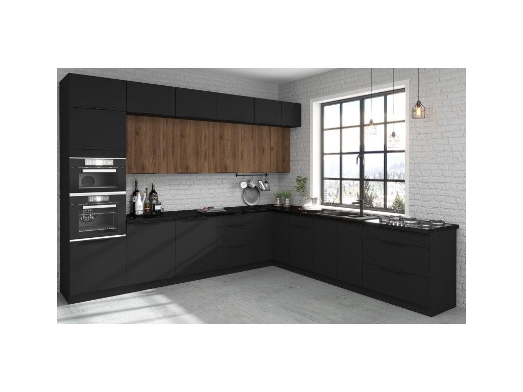 je součástí moderního sektoru kuchyňských linek ARONA, MONZA a SIENA. U těchto linek je vždy korpus v černém matu a pouze dvířka (zásuvky) se mění podle názvu linky - ARONA má přední části v odstínu Cashmere, MONZA v odstínu okapského ořechu a SIENA má jak korpus v černém matu, tak i všechny své přední části. Můžete si tak nakombinovat svojí vysněnou kuchyňskou linku nejen dle svých rozměrů, ale i v různém barevném provedení. Pro inspiraci jsme pro Vás připravili hotové kuchyňské sestavy. Tento nábytek je vyroben z kvalitního lamina 16 mm a zakončený ABS hranou, úchytky jsou černé hliníkové. U skříněk s výklopem se dvířka zvedají pomocí plynových pístů, Cargo skříňky jsou výsuvné, všechny ostatní skříňky (mimo rohových) a zásuvky jsou opatřeny systémem tichého dovírání.