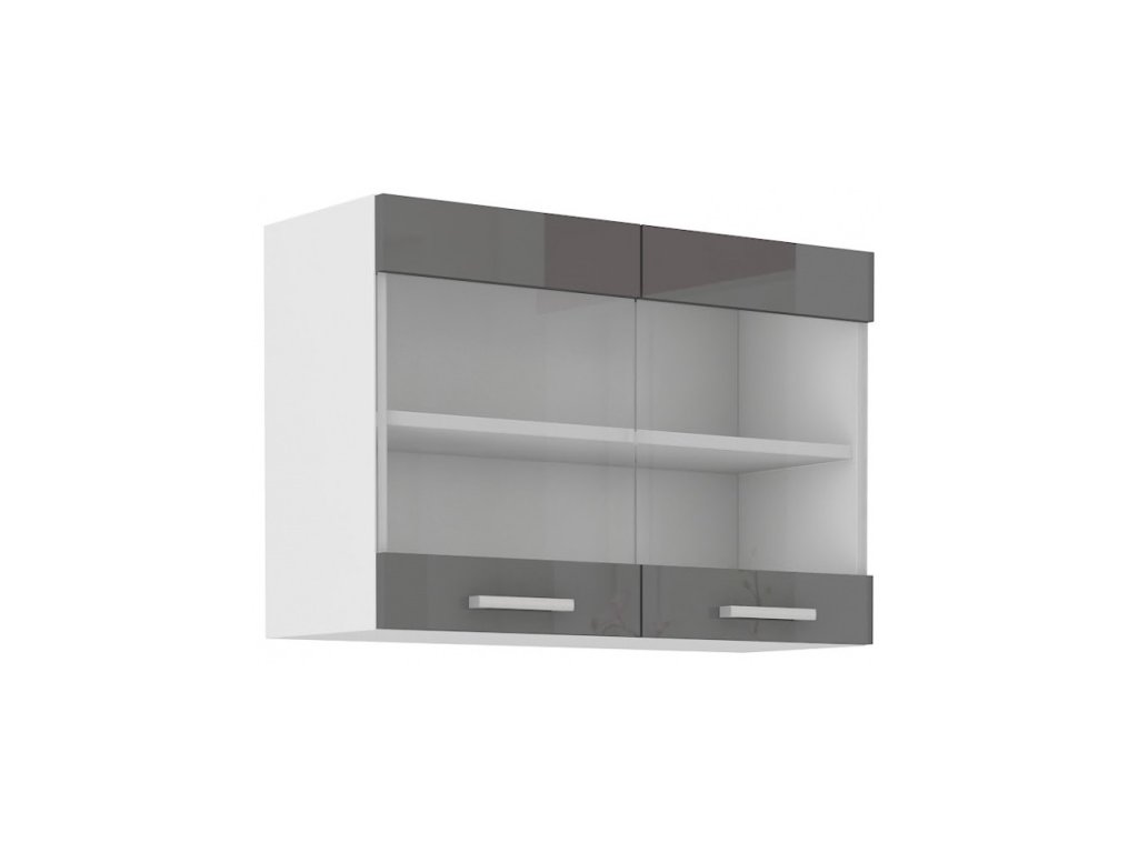 Kuchyňská skříňka Sonia šedý lesk - horní vitrína 80 GS-60 2F