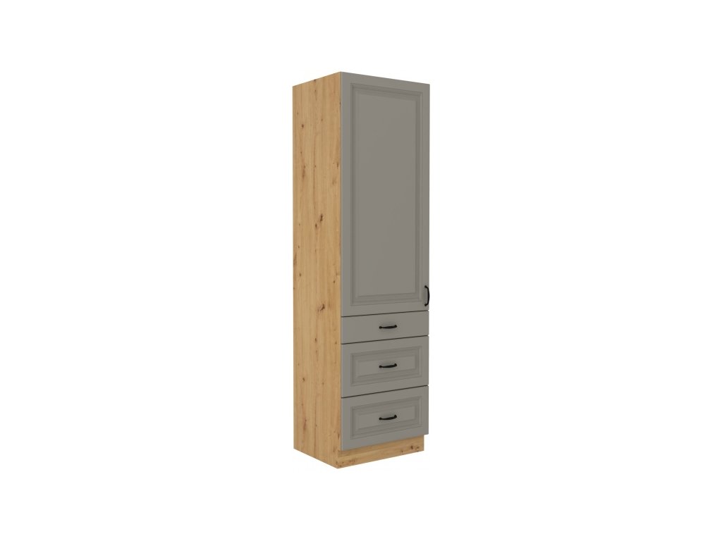 Kuchyňská skříňka Stilo ClayGRAR - 60 DKS-210 3S 1F potravinová se šuplíky, Clay Grey + Artisan