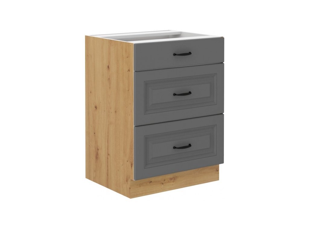 Kuchyňská skříňka Stilo DustGRAR - dolní 60 D 3S šuplíková, Dust Grey + Artisan