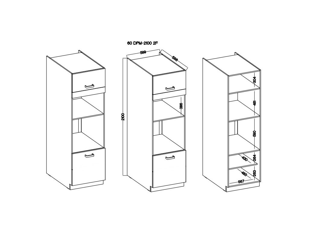 Kuchyňská skříňka Vigo bílý lesk - 60 DPM-210 2F sloupek se zabudovanou troubou a mikrovlnkou, dvířka