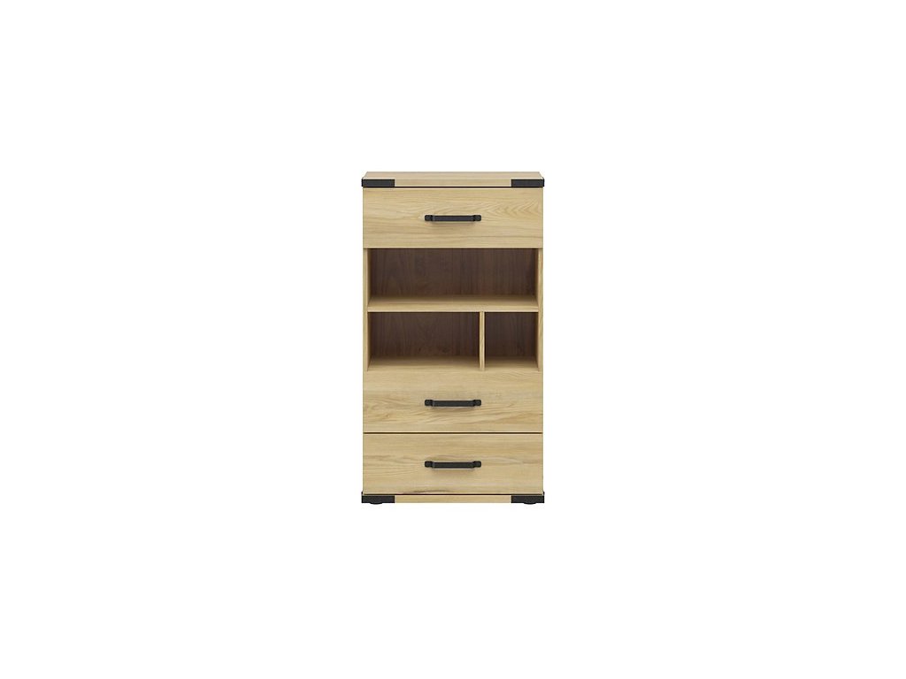 Úložný prostor je v podobě tří zásuvek a otevřených polic. Barevné provedení je v barvě jasan běloruský s černými doplňky, které dodají na zajímavosti celé kolekce LARA.