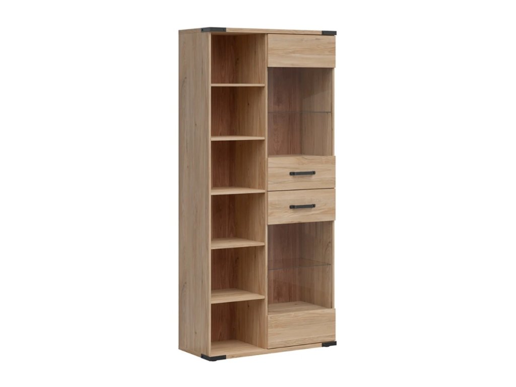 V levé straně je policová část otevřená, v pravé dvířka s tvrzeným sklem a systémem tichého zavírání.