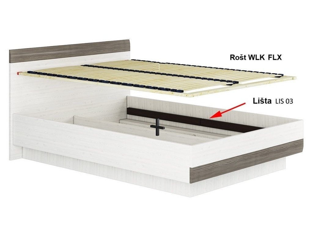 Lišty jsou pro přípevnění roštu, který je bez výklopu (viz obrázek).