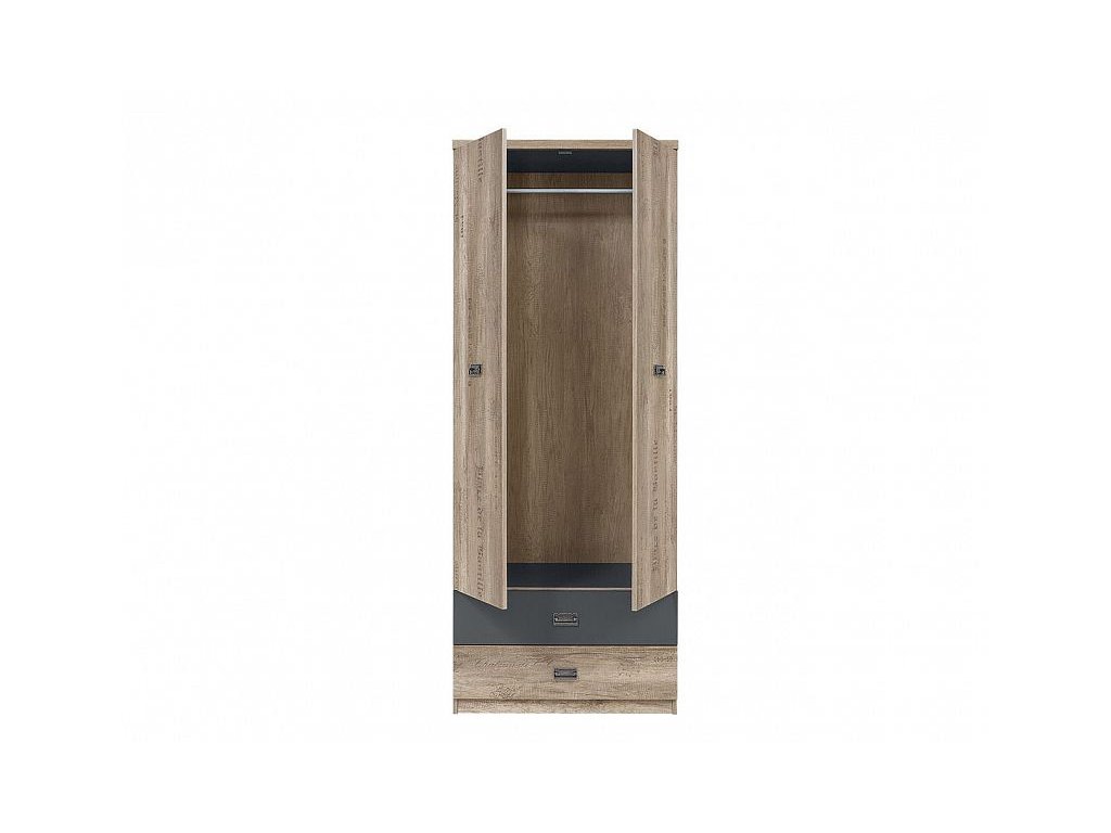 Šatní skříň Malcolm SZF2D2S je prostorná a moderní, barevné provedení dub canyon monument/šedý wolfram.