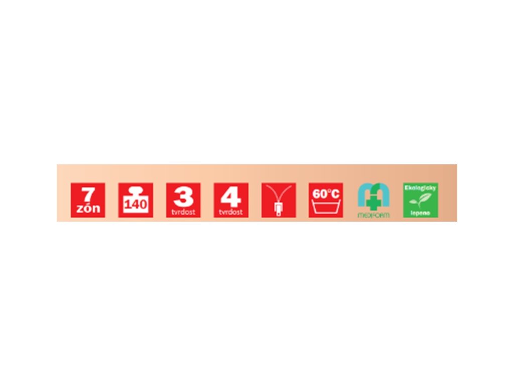 Sedmizónová sendvičová matrace s volbou dvojí tuhosti. Střed jádra matrace je zpevněn pojeným polyuretanem (PUR RE 80). Nosné vrstvy jsou tvořeny kvalitními elastickými pěnami MediFoam (28 a 30 kg/m³), které jsou tvarovány do masážních nopů. Nopy zabezpečují prokrvení pokožky a uvolnění svalů během spánku.