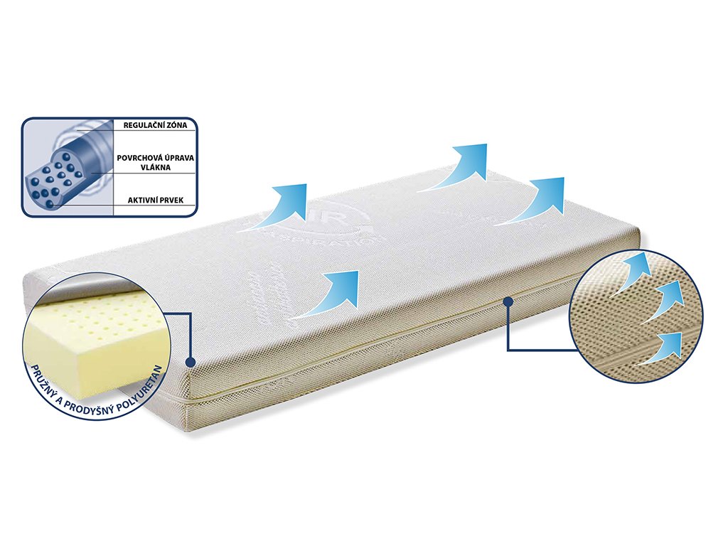 Jádro: je vyrobena z pružného pěnového polyuretanu. Jedná se o materiál, který se přizpůsobuje účinně tvaru těla a je velmi flexibilní, ale s dostatečnou tuhostí pro správné držení těla v průběhu spánku. Neobsahuje CFC.