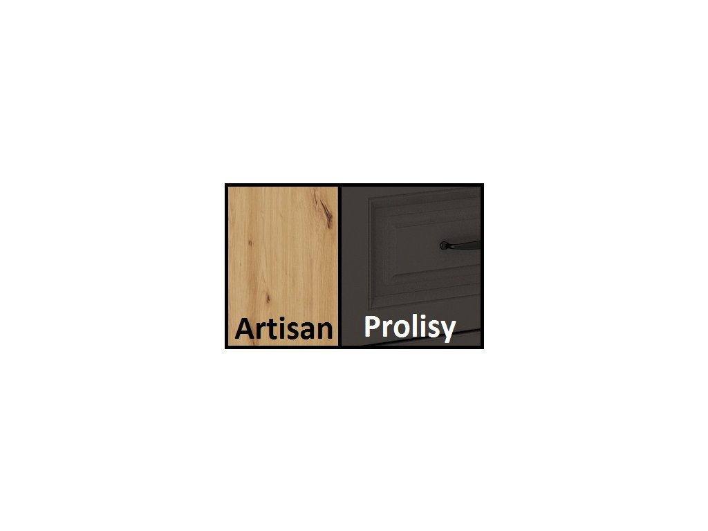je součástí sektorového nábytku Flawia (dub Artisan + Grafit). Tento stylový nábytek dodá Vašemu interiéru zajímavý vzhled a zaslouženou pozornost. Přední části, které jsou v odstínu grafit mat s prolisy, jsou atraktivním prvkem tohoto nábytku. Korpus má odstín dub Artisan, hrany jsou zakončeny lištou ABS a úchytky tohoto sektoru jsou kovové.