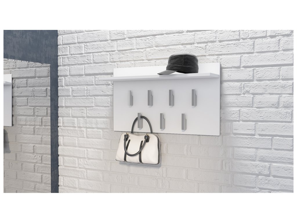 Praktický nástěnný věšák Modis 2F je ideálním řešením pro každou předsíň – ať už malou, nebo prostornou. Sedm pevných háčků a odkládací police zajistí dostatek místa pro kabáty, tašky i doplňky. Díky kvalitnímu zpracování a nadčasovému designu se věšák hodí do jakéhokoli interiéru. Nábytek je vyroben z kvalitního lamina, které je snadno udržovatelné a odolné proti oděru, dlouhou životnost zajišťují hrany povrchově upravené ABS materiálem.