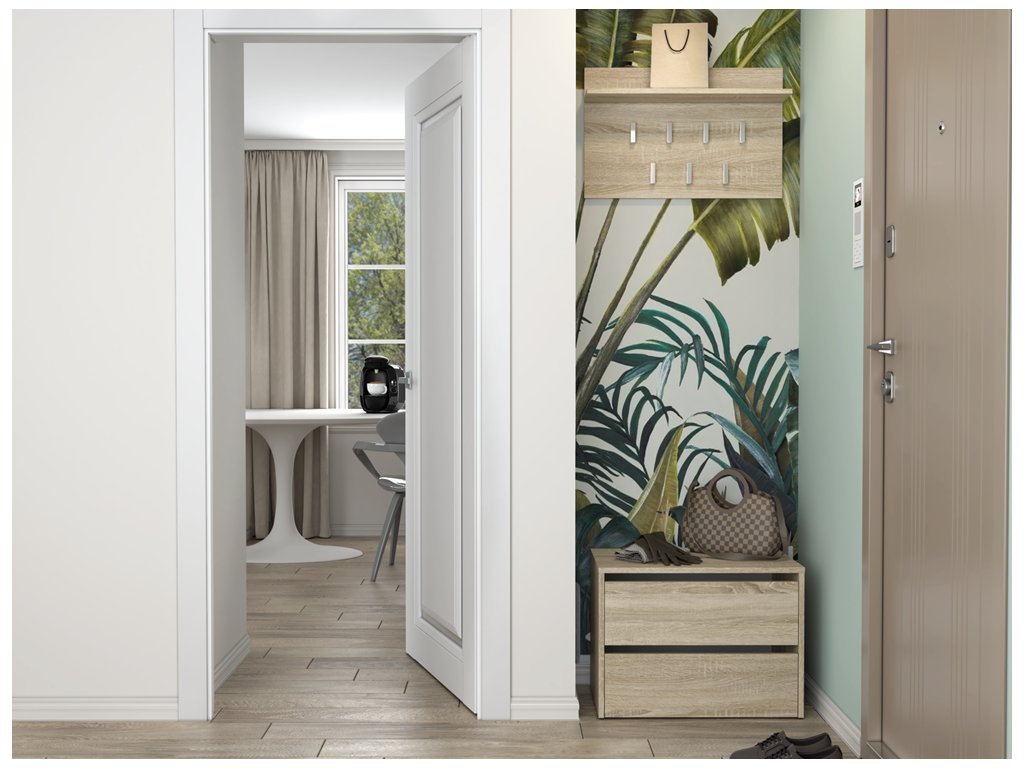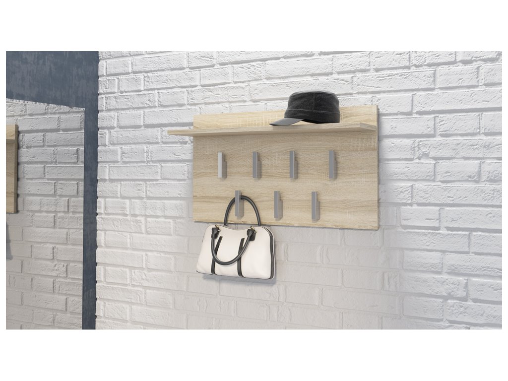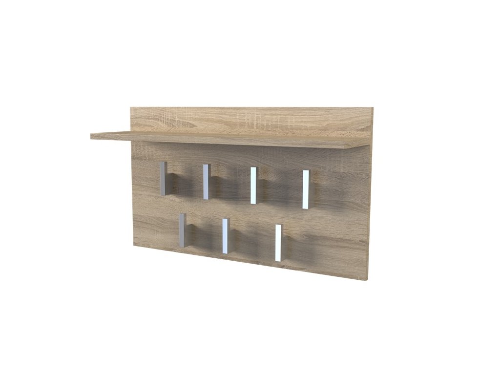 Praktický nástěnný věšák Modis 2F je ideálním řešením pro každou předsíň – ať už malou, nebo prostornou. Sedm pevných háčků a odkládací police zajistí dostatek místa pro kabáty, tašky i doplňky. Díky kvalitnímu zpracování a nadčasovému designu se věšák hodí do jakéhokoli interiéru. Nábytek je vyroben z kvalitního lamina, které je snadno udržovatelné a odolné proti oděru, dlouhou životnost zajišťují hrany povrchově upravené ABS materiálem.