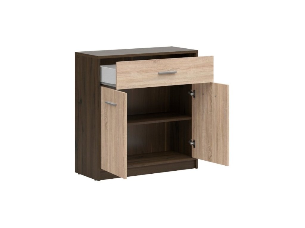 Moderní, nebo klasicky zařízený interiér? S komodou NEPO PLUS si hravě poradíte s oběma typy. Nábytek je vyroben z lamina v barevném provedení dub ušlechtilý/dub sonoma. Úložný prostor je v podobě zásuvky a police uschované za dvířky. Dvířka jsou opatřena stříbrnou plastovou úchytkou. Dodáváno v demontu.