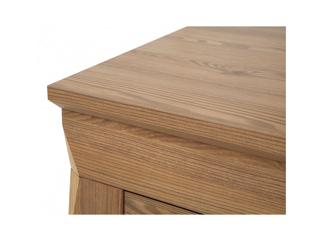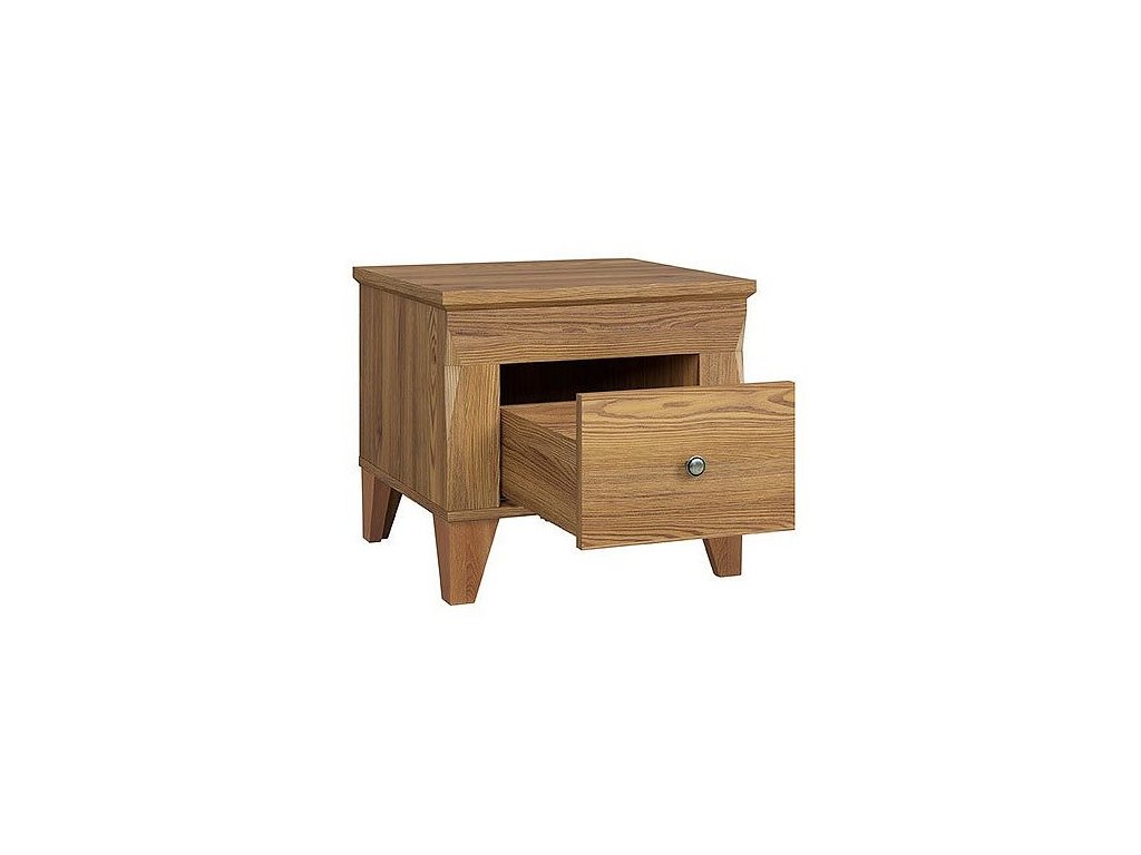 Noční stolek Bergen KOM1S v barvě modřín sibiu zlatý. Zásuvka na úschovu drobností je na pojezdech HETTICH Quadro Silent System s tlumeným dojezdem.
