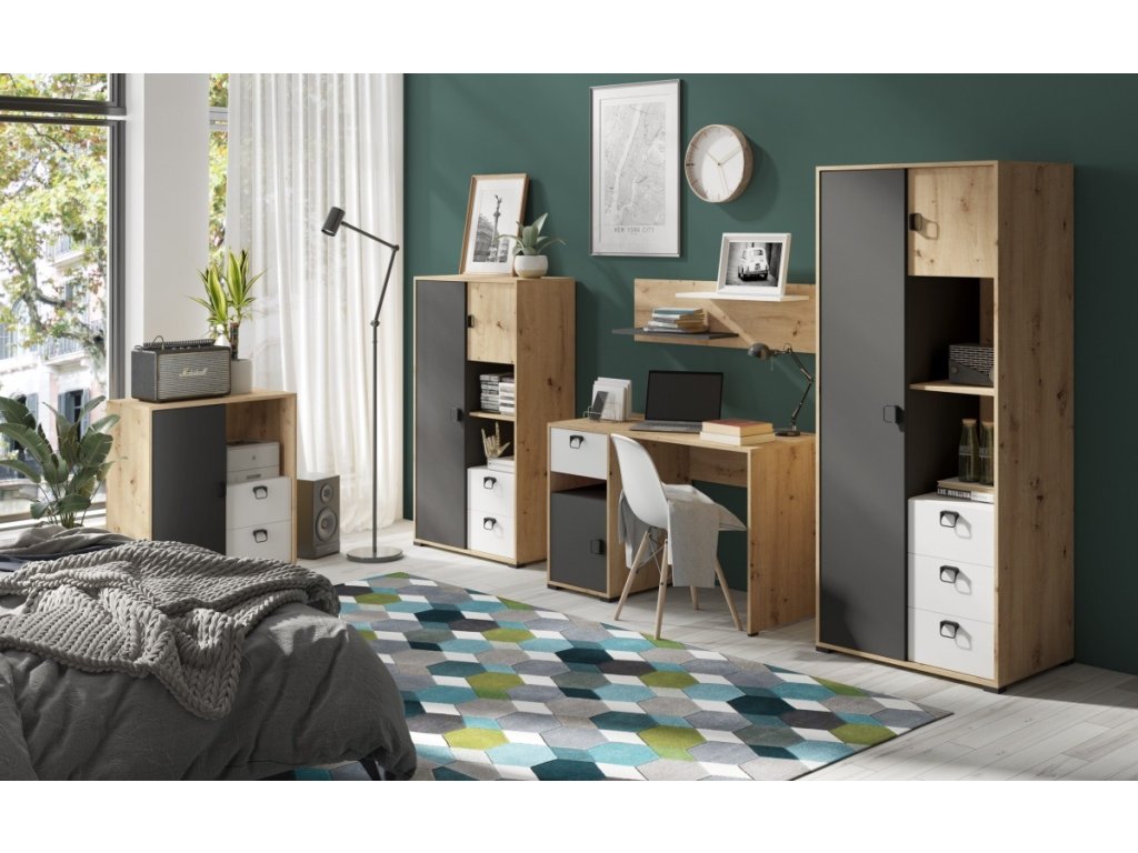 Kolekce Kevin zaujme na první pohled svým jednoduchým, ale zároveň zajímavým provedením. Nepřehlédnutelné úchyty dodají nábytku styl a šmrnc. Různé díly zajistí sestavit pokojíček pro Vaše dítko přesně podle jeho představ a potřeb. S tímto sektorem se budou Vaše děti cítit příjemně, bezpečně a uvolněně. Velmi dobře se kombinuje s ostatními dětskými doplňky.