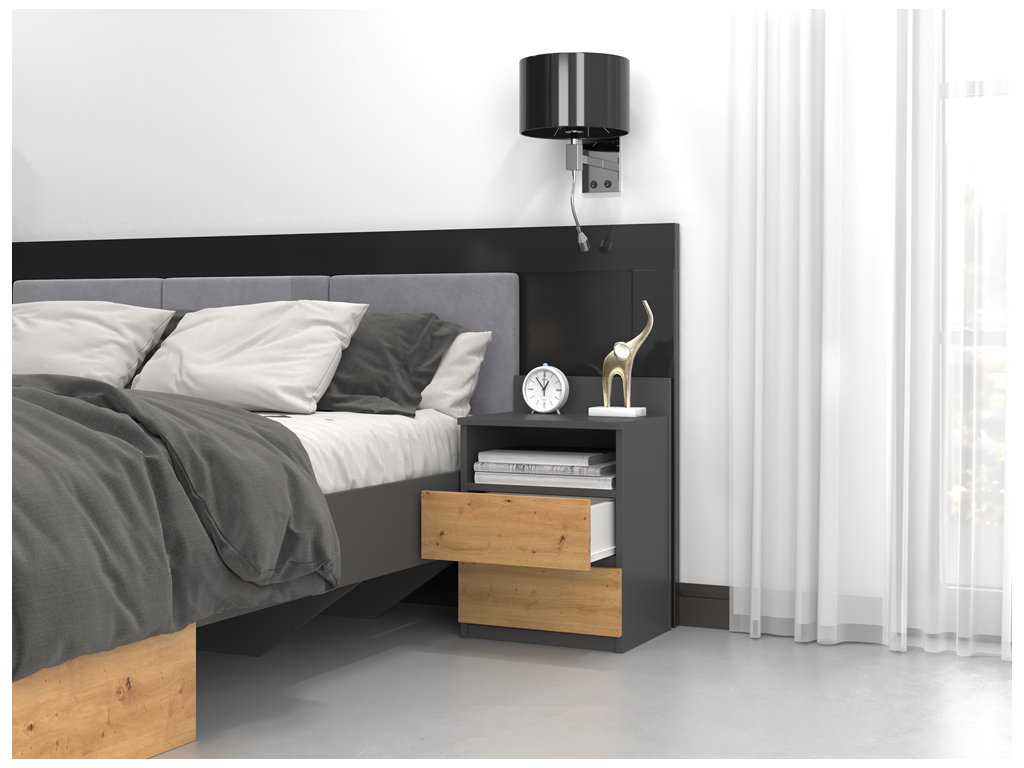 Noční stolek Malvína M1 antracit/dub artisan