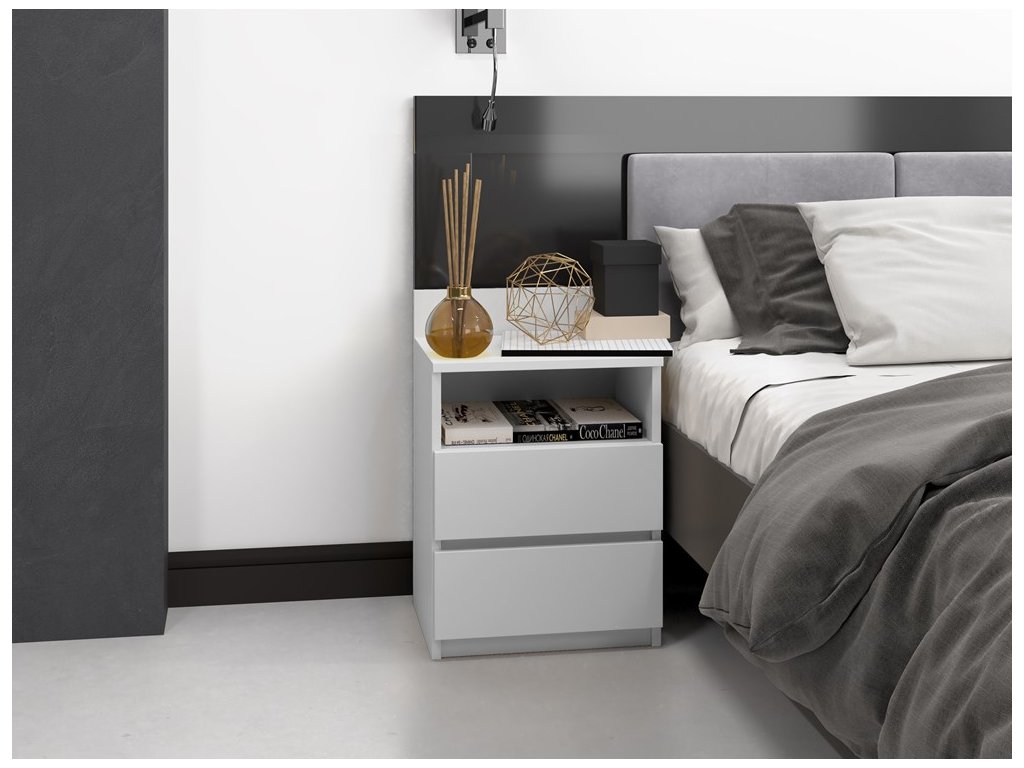 Nepostradatelným prvkem každé ložnice jsou noční stolky. Nadčasový stolek Malvína v minimalistickém designu splní očekávání všech, kteří oceňují kombinaci jednoduchosti a elegance. Bezúchytková čela zásuvek zajistí pohodlné používání a dokreslí moderní a útulný charakter vašeho interiéru. Je vyroben ze snadno udržovatelného lamina, hrany jsou zakončené vysoce odolným ABS materiálem.