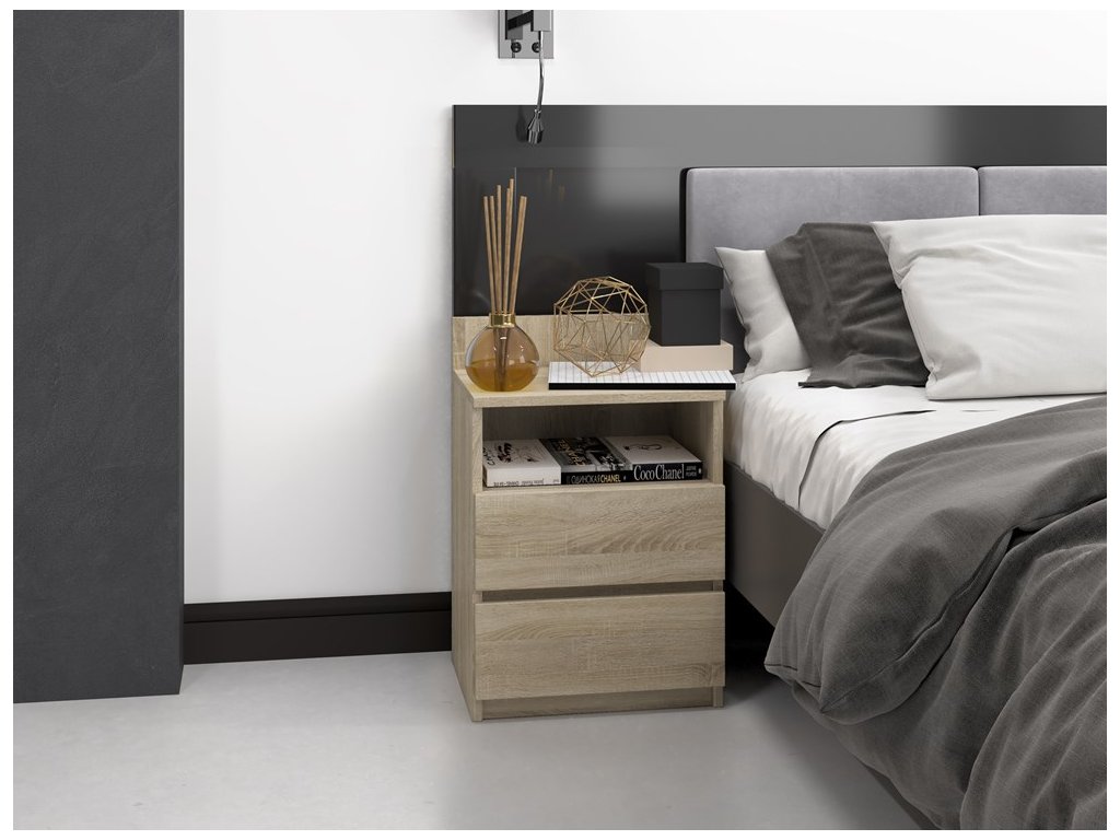 Nepostradatelným prvkem každé ložnice jsou noční stolky. Nadčasový stolek Malvína v minimalistickém designu splní očekávání všech, kteří oceňují kombinaci jednoduchosti a elegance. Bezúchytková čela zásuvek zajistí pohodlné používání a dokreslí moderní a útulný charakter vašeho interiéru. Je vyroben ze snadno udržovatelného lamina, hrany jsou zakončené vysoce odolným ABS materiálem.