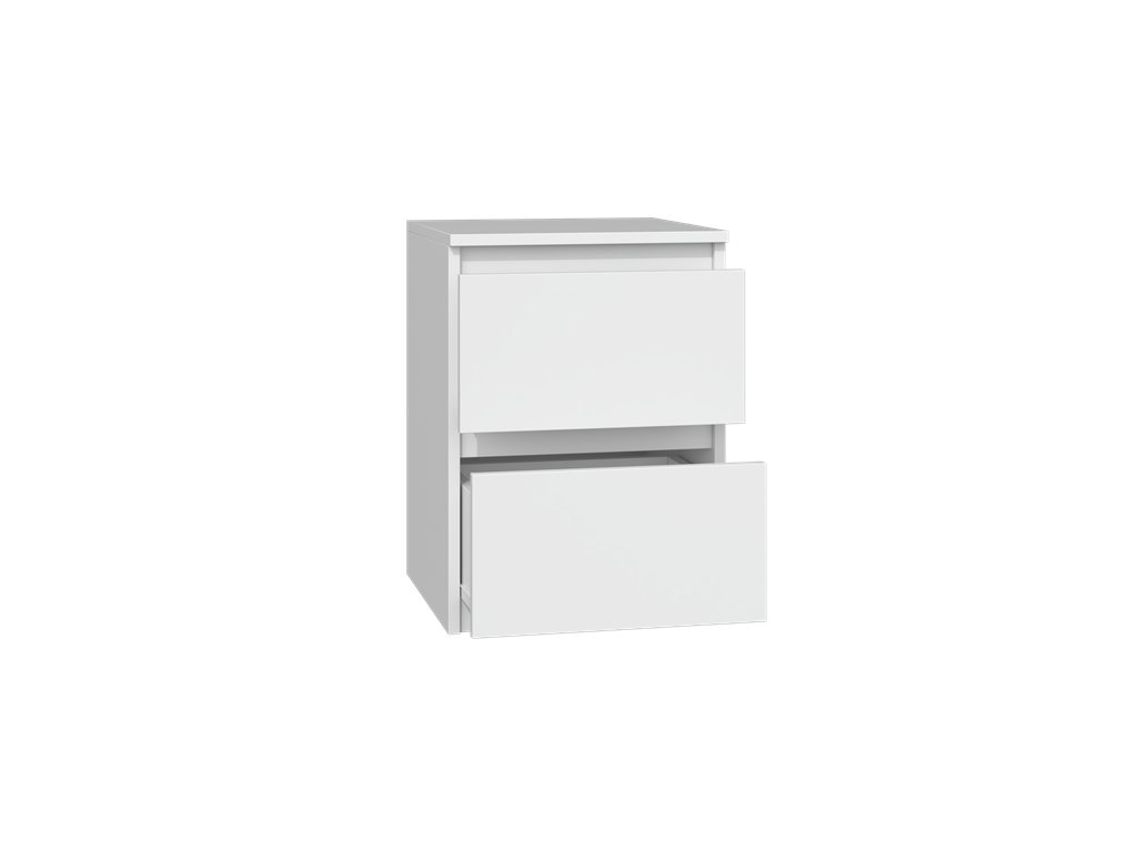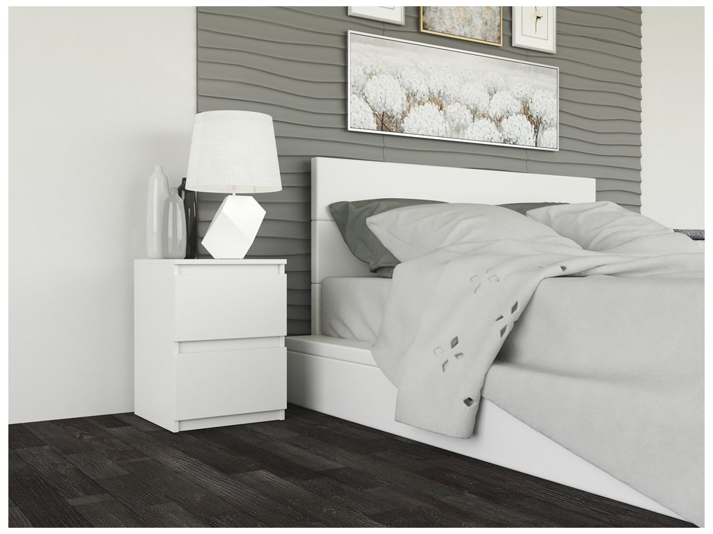 Nepostradatelným prvkem každé ložnice jsou noční stolky. Nadčasový stolek Malvína M2 v minimalistickém designu splní očekávání všech, kteří oceňují kombinaci jednoduchosti a elegance. Bezúchytková čela zásuvek zajistí pohodlné používání a dokreslí moderní a útulný charakter vašeho interiéru. Je vyroben ze snadno udržovatelného lamina, hrany jsou zakončené vysoce odolným ABS materiálem.