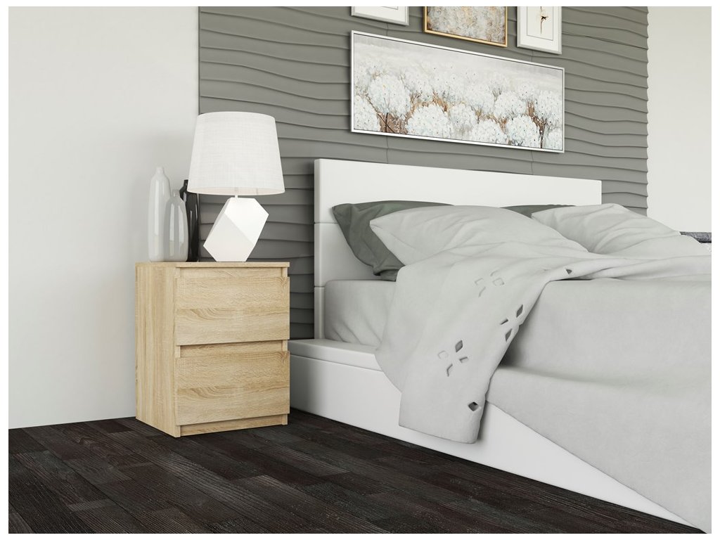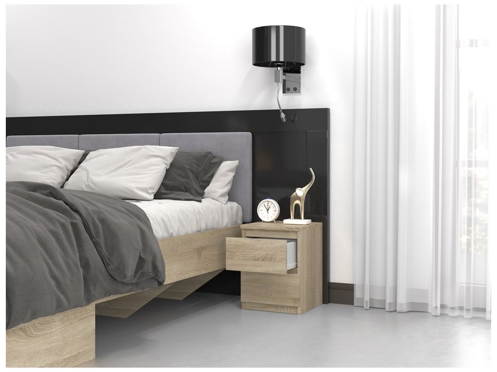 Nepostradatelným prvkem každé ložnice jsou noční stolky. Nadčasový stolek Malvína M2 v minimalistickém designu splní očekávání všech, kteří oceňují kombinaci jednoduchosti a elegance. Bezúchytková čela zásuvek zajistí pohodlné používání a dokreslí moderní a útulný charakter vašeho interiéru. Je vyroben ze snadno udržovatelného lamina, hrany jsou zakončené vysoce odolným ABS materiálem.