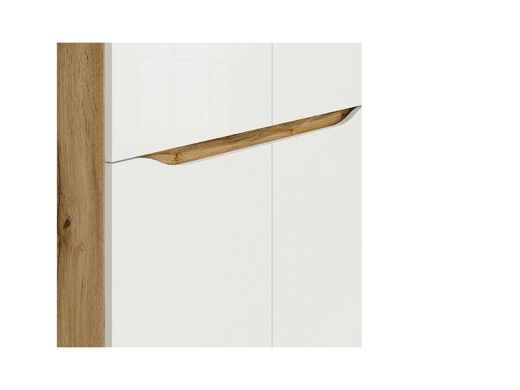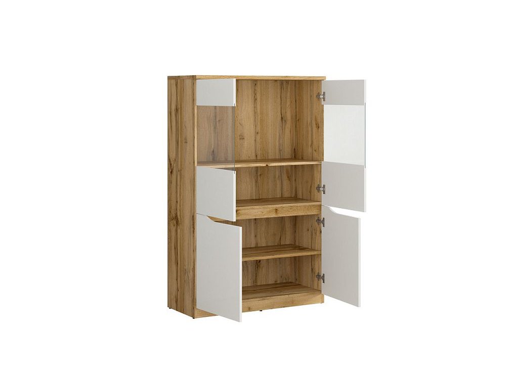 Vitrína je vyrobená v barvě bílá lesk s prvky barvy dubu wotan a skla.