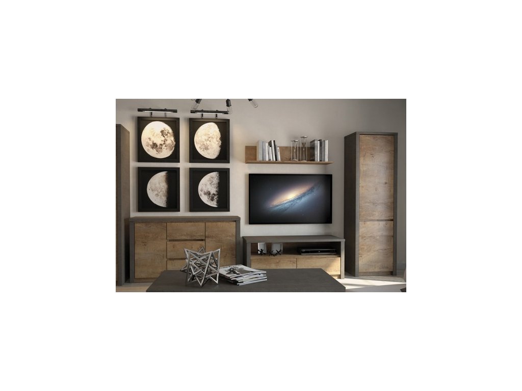 Krásně laděná kombinace je velmi elegantní a moderní formou do každého obývacího pokoje, ložnice či jídelny. Je vyrobena z laminované dřevotřísky se strukturou dřeva. Celý nábytek je bezúchytkový a proto dodá ještě více na dojmu.
