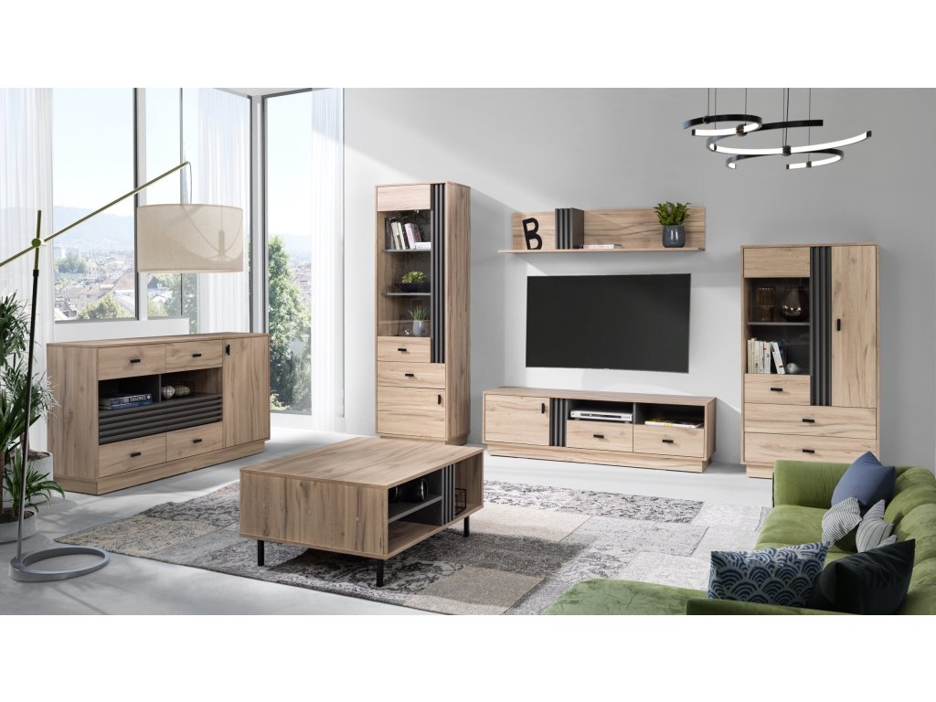 Sektorový nábytek Allmo, je jednoduchý, atraktivní a trendy. Velmi originální systém, který vyniká především kombinací světlého dřeva a dekorativních lamel. Lamely dodávají nábytku kouzlo a dokonalý styl, který ocení jak dospělý, tak i děti. Nábytek lze použít v obývacím nebo dětském pokoji.