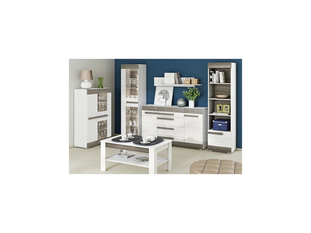 Sektor BLANCO je novinkou v naší nabídce, který odkazuje na nejnovější trendy. Jednoduchý design borovice sněžné v kombinaci s MDF New Grey dodává tomuto nábytku elegantní a čistý vzhled. Jedinečná kolekce nábytku BLANCO je vyráběna z vysoce kvalitní laminované desky MDF. ABS hrany zajišťují odolnost při každodenním použití. K proskleným dílům sektoru BLANCO lze dokoupit LED osvětlení. Díky široké škále komponentů nábytku BLANCO, které je možné zakoupit i jednotlivě si můžete vytvořit obývací pokoj, ložnici nebo studentský pokoj podle své vlastní představy.