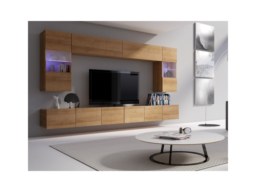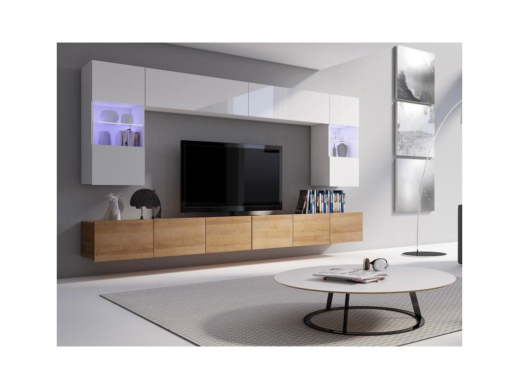 Dolní segment je univerzální - TV stolky možno postavit či zavěsit.